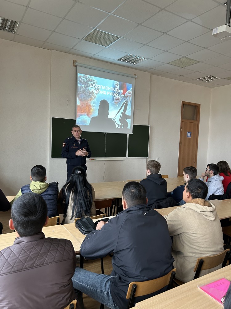 Сергей Владимирович рассказал обучающимся о законных формах и способах выражения гражданской позиции и реализации своих конституционных прав; показал видеоматериалы с алгоритмами действий при вооруженном нападении на образовательное учреждение и при угрозах совершения террористического акта; разъяснил на примерах правила поведения во время вооруженного нападения. По завершению мероприятия обучающиеся задали вопросы.