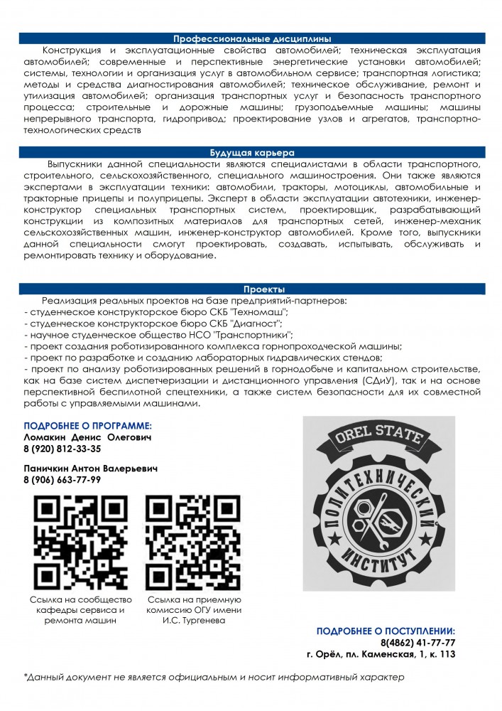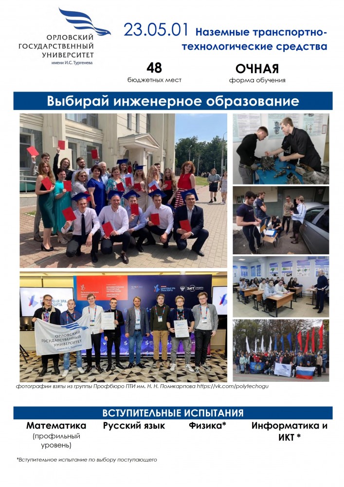 В этом году кафедра сервиса и ремонта машин осуществляет набор абитуриентов на специальность 23.05.01 Наземные транспортно-технологические средства на очную форму обучения.