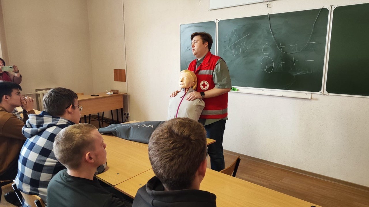 Симаков Александр, инструктор Орловского регионального отделения общероссийской общественной организации «Российский Красный Крест», подробно, доступно и интересно изложил важную информацию по алгоритму действий при необходимости оказания первой доврачебной помощи.