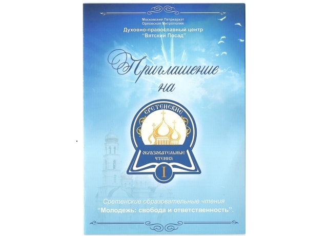 12 февраля 2019 г. в Духовно-православном центре «Вятский Посад» состоятся I образовательные Сретенские чтения. Для обсуждения предлагается тема «Молодежь: свобода и ответственность».