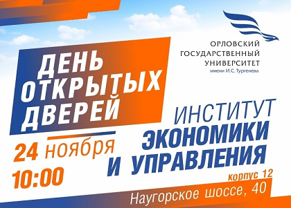 24 ноября 2024. приглашаем на День открытых дверей Института экономики и управления ОГУ им. И.С. Тургенева