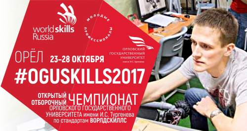 С 23 по 28 октября в Орловском государственном университете им. И.С. Тургенева на территории 3000 кв. м. Универсальной Фундаментальной библиотеки состоится вузовский чемпионат профмастерства по стандартам Worldskills, масштаб которого охватит все студенчество Орловщины! По итогам соревнований будет сформирована Сборная региона, которая выступит на Национальном Межвузовском чемпионате по стандартам Ворлдскиллс в Москве.