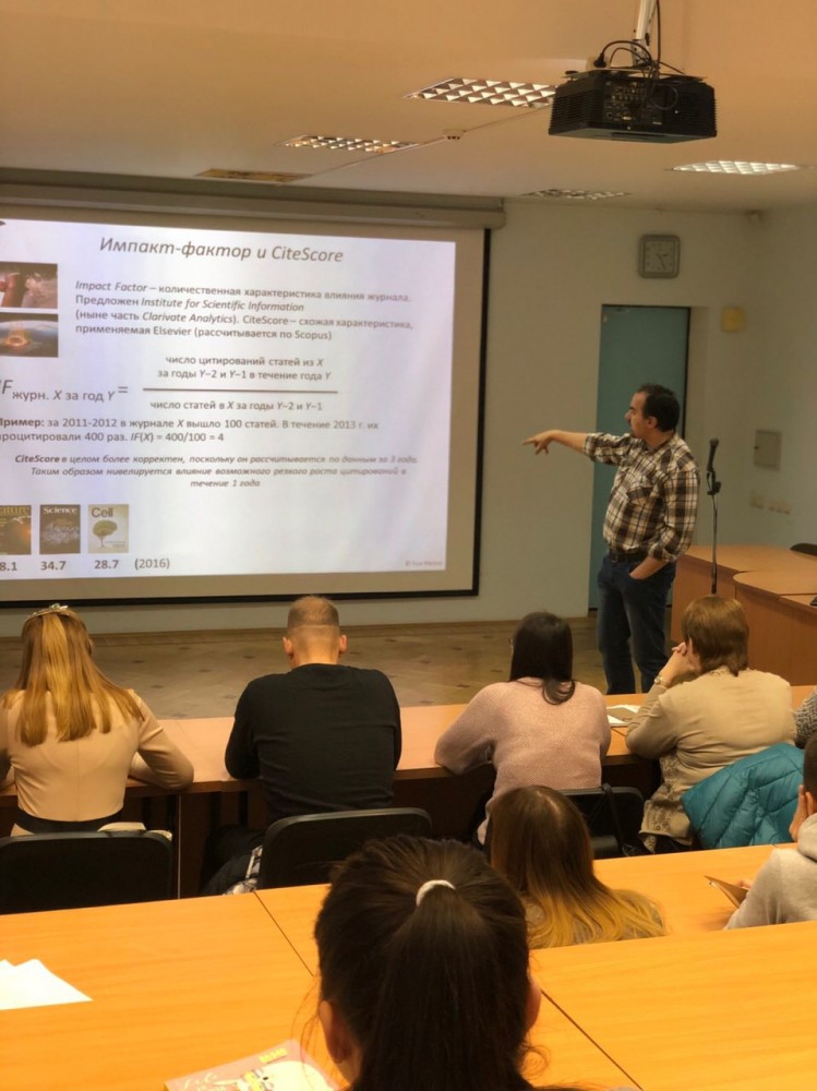 Преподаватели кафедры теории государства и права Юридического Института ОГУ им. И.С. Тургенева и студенты 4 и 5 курсов посетили научный семинар «Как использовать ресурсы Elsevier ( Mendeley, SD , Scopus ) в практической научной деятельности, в том числе для публикации результатов в международных журналах». Во время семинара были рассмотрены информационные и аналитические ресурсы Scopus и ScienceDirect, доступные в Орловском государственном университете имени И.С. Тургенева, методики их эффективного использования в научной работе. Лектор - Алексей Паевский, научный редактор портала Indicator.Ru, главный редактор портала Neuronovosti.Ru, Эксперт по научным коммуникациям и научной журналистике.