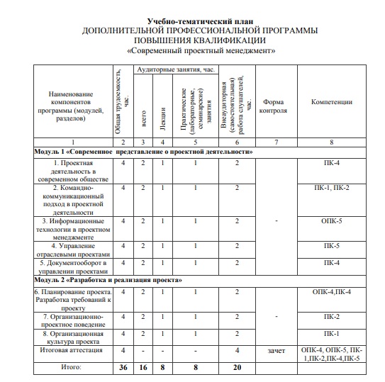 Дополнительная профессиональная программа повышения квалификации «Современный проектный менеджмент»