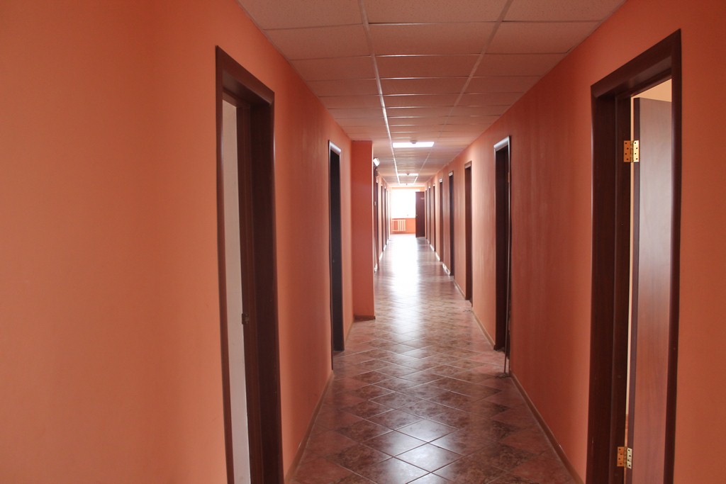 общежитие имеет 5 этажей, коридорного типа, комнаты рассчитаны на проживание 2, 3, 4 человек. В каждую комнату проведён интернет.