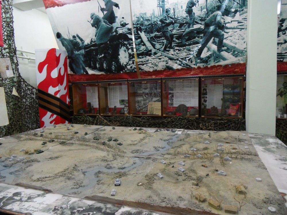 Центр военно-патриотического воспитания Экспозиция центра включает материалы, посвященные событиям Великой Отечественной войны на территории Мценского края. Особое место в ней отводится рождению в боях под Мценском Первой Гвардейской танковой бригады под командованием маршала бронетанковых войск, дважды Героя Советского Союза М.Е. Катукова и её боевому пути, а также пути трех армий, освободивших город Мценск. На открытии экспозиции присутствовала вдова маршала Екатерина Сергеевна Катукова, которая передала на хранение фотографии, личные вещи и бюст маршала. В центре военно-патриотического воспитания частично воссоздана обстановка блиндажа военного времени. В качестве обстановки имеются образцы полевых телефонов для связи, лампы освещения типа «летучая мышь», столы и лавки для проведения совещаний командованием, а в наше время – для проведения интерактивных воспитательных мероприятий военно-патриотического характера, а также занятий методом «погружения в события». К 65-летию Победы М.Е Катукова был создан макет местности в районе реки Лисица, где 6 октября 1941 года шел общевойсковой бой между германскими и советскими войсками. На этом интерактивном макете детально реконструирован решающий для обеих сторон в день танкового сражения, развернувшегося на огромном поле к юго-западу от Первого Воина. На одном из стендов показана карта с дислокацией наших воинских подразделения и германских войск за период с 01.10.41.по 11.10.41. По карте можно понять, как проходили бои на подступах к г. Мценску в этот период. Здесь же представлен текст приказа Верховного Главнокомандующего о присвоении танковой бригаде Катукова М.Е звания гвардейской. Копия гвардейского знамени Бригады также представлена в экспозиции. В открытой экспозиции представлены находки, сделанные студентами филиала в период участия в раскопках на местах воинских захоронений в составе поисковых отрядов. |