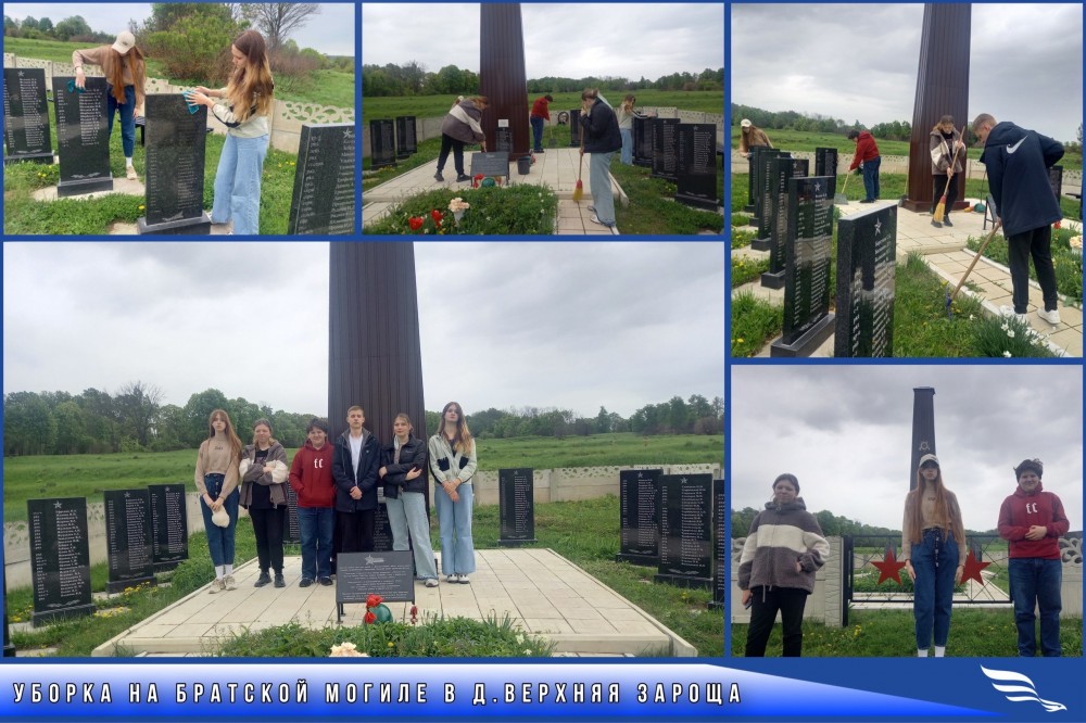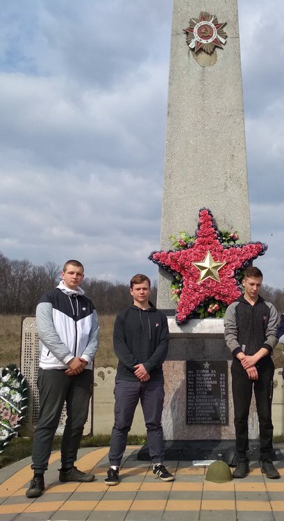 В преддверии 74-й годовщины Победы в Великой Отечественной войне, по ежегодной памятной традиции обучающиеся 3 курса СПО гр.Э-3-343 Сидоров В., Евченко А., Пономарёв М. провели экологическую акцию по благоустройству Братского захоронения в д.Нижняя Зароща Спасско-Лутовиновского с/п.. Обучающиеся почтили память павших советских солдат минутой молчания.