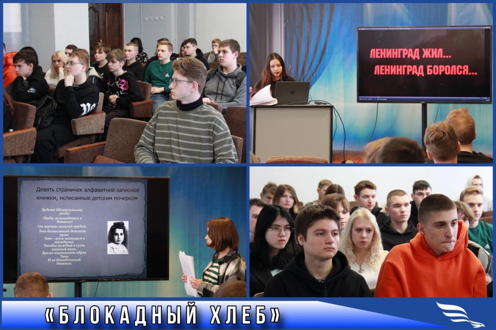 Обучающиеся гр.Св-4-386 рассказали о «дороге жизни», которая проходила по льду Ладожского озера, прочитали дневник Тани Савичевой, рассказали о нормах хлеба на день. Студенты почтили память жертв блокадного Ленинграда минутой молчания.