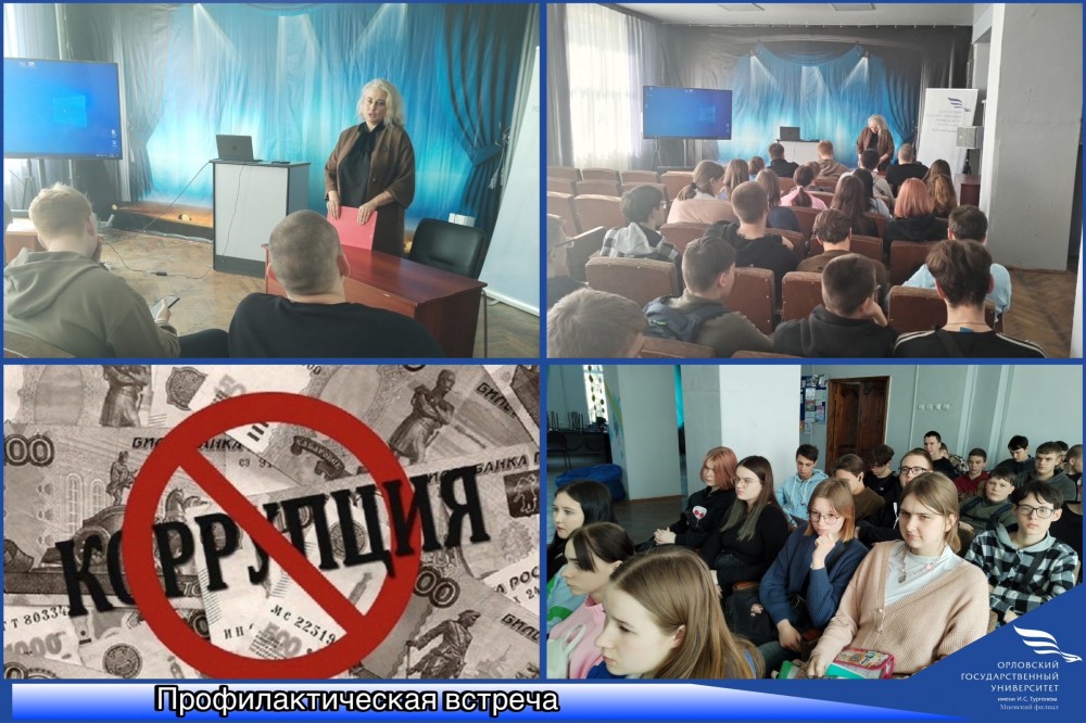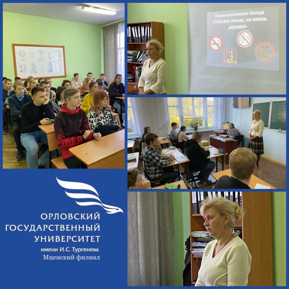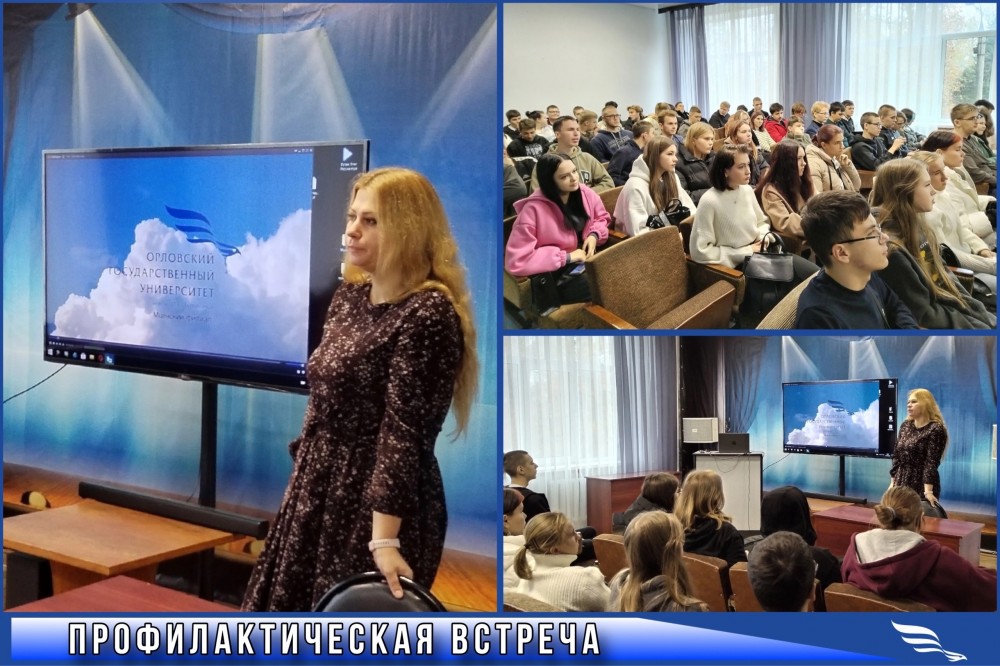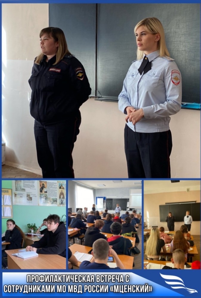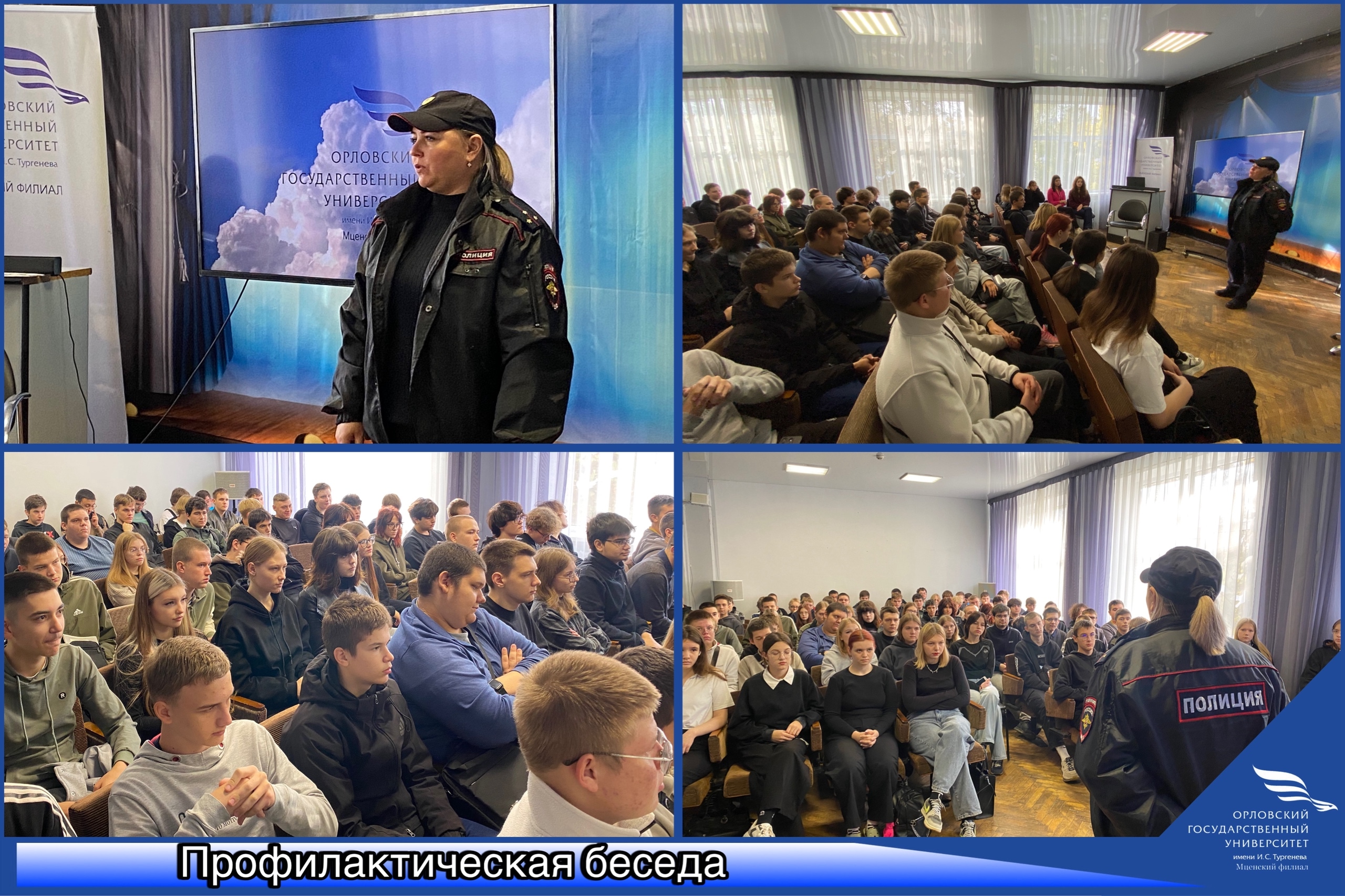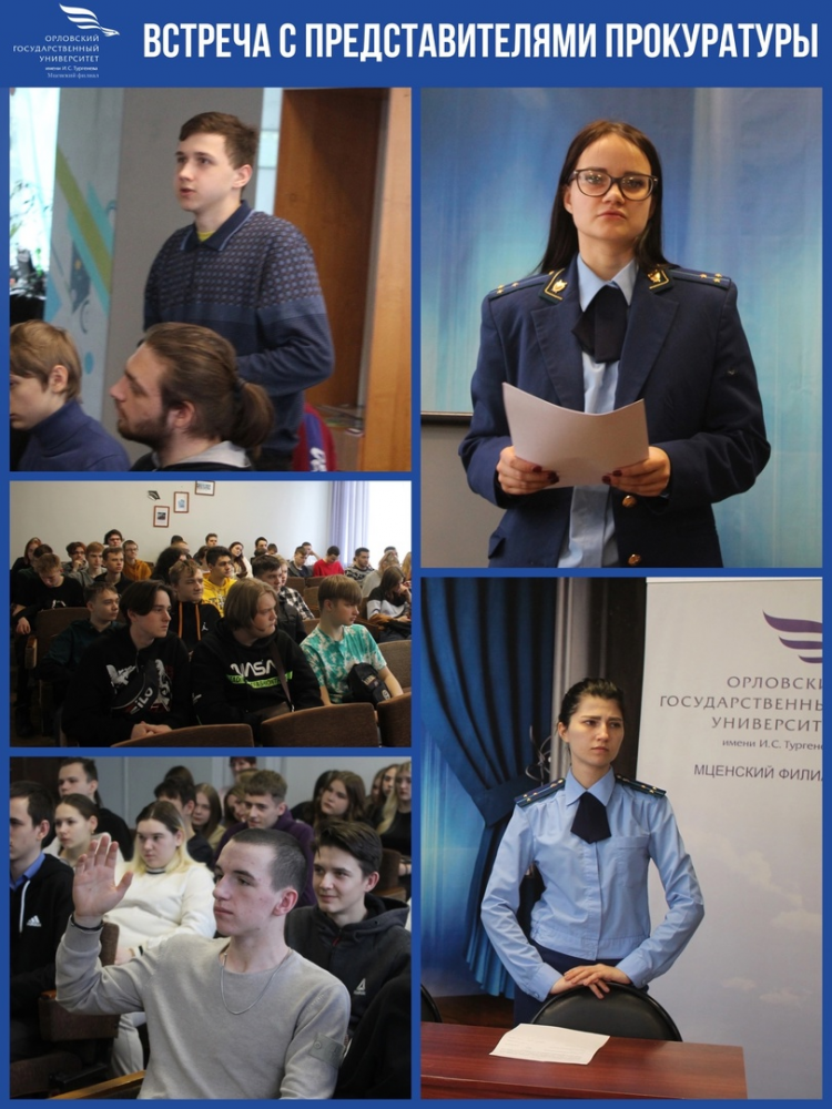 22 января прошла профилактическая встреча обучающихся Мценского филиала ОГУ имени И. С. Тургенева со старшим инспектором ПДН МО МВД России «Мценский», капитаном полиции Елецкой С. А. и сотрудником Центра по противодействию экстремизму УМВД России по Орловской области.