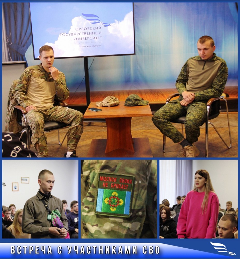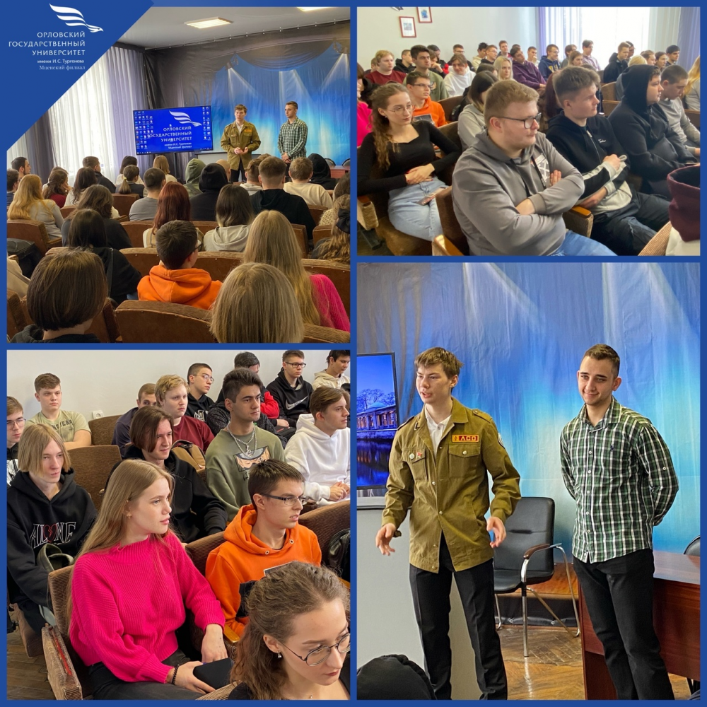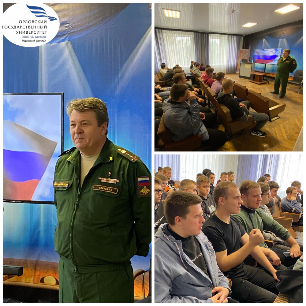 16 февраля в Мценском филиале ОГУ имени И.С. Тургенева состоялась встреча, посвященная возможностям современной военной службы. Спикером собрания стал подполковник Румянцев Сергей Александрович, заместитель начальника Военного учебного центра при ОГУ имени И.С. Тургенева. Он принимал участие в боевых действиях в Сирии и специальной военной операции, имеет государственные награды.