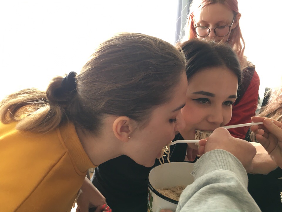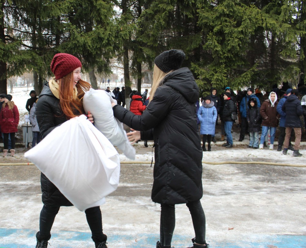 «Бой подушками» и «Перетягивание каната» не позволили замерзнуть тем, кто не попал в команды, а студенческая каша и глинтвейн сделали этот день не только веселым, но и сытным.