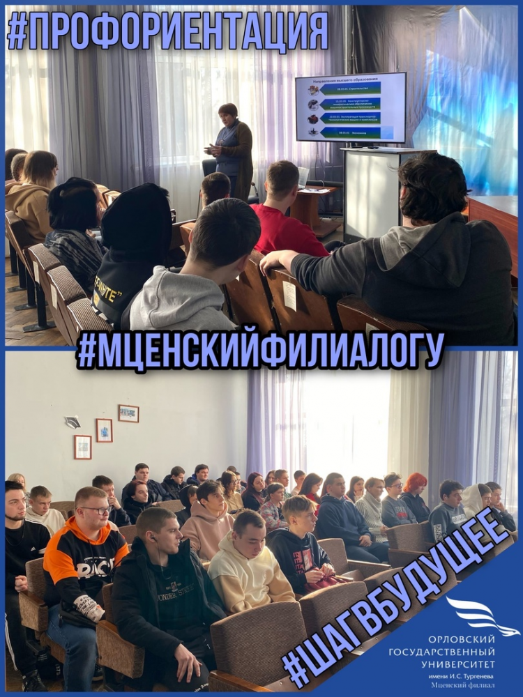 Мы надеемся, что такие встречи помогут школьникам сделать осознанный выбор будущей профессии и станут первым шагом на пути к получению качественного образования в Мценском филиале ОГУ имени И.С. Тургенева!