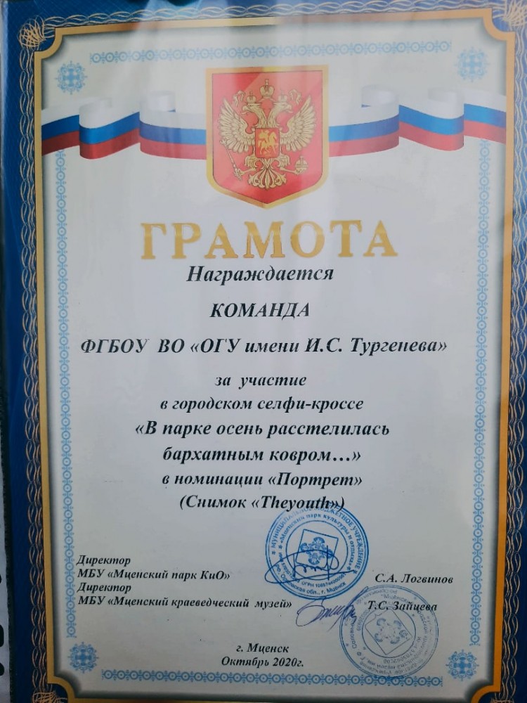 2 место – «ОГУшка» - Мценский филиал ОГУ им. И. С. Тургенева