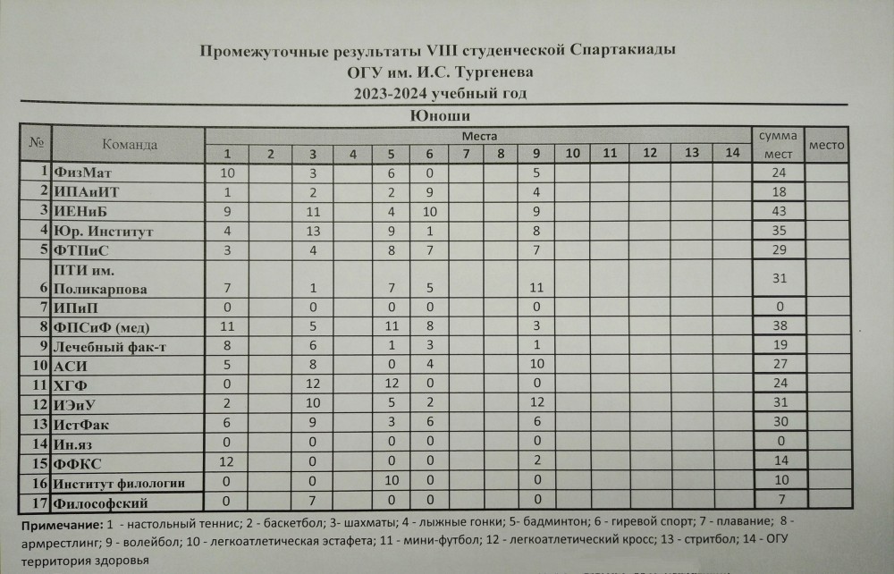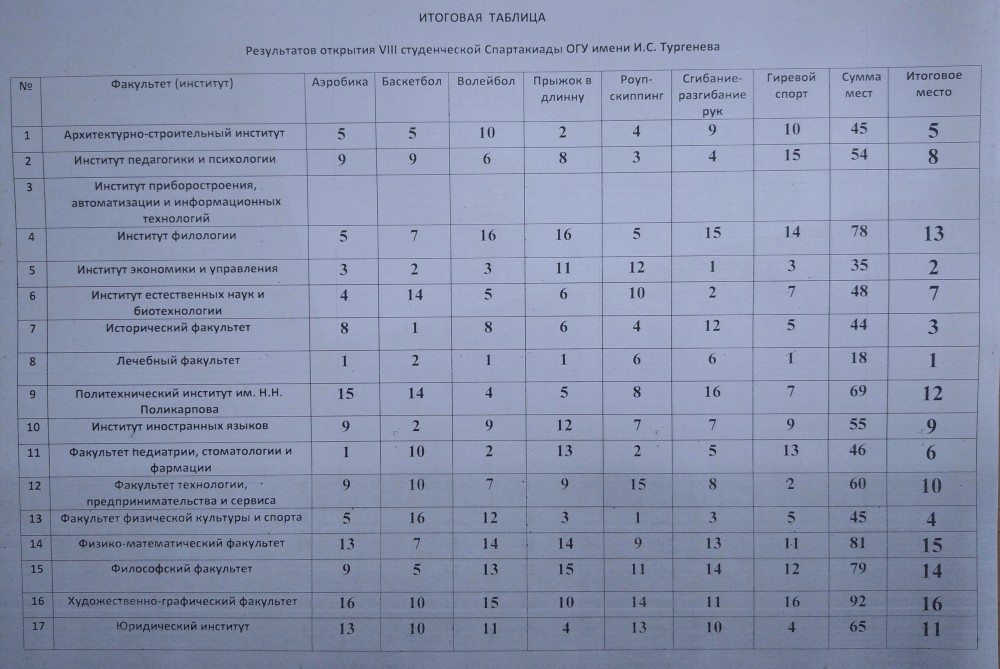 Спартакиада ОГУ имени И.С.Тургенева 2023/2024 уч.год