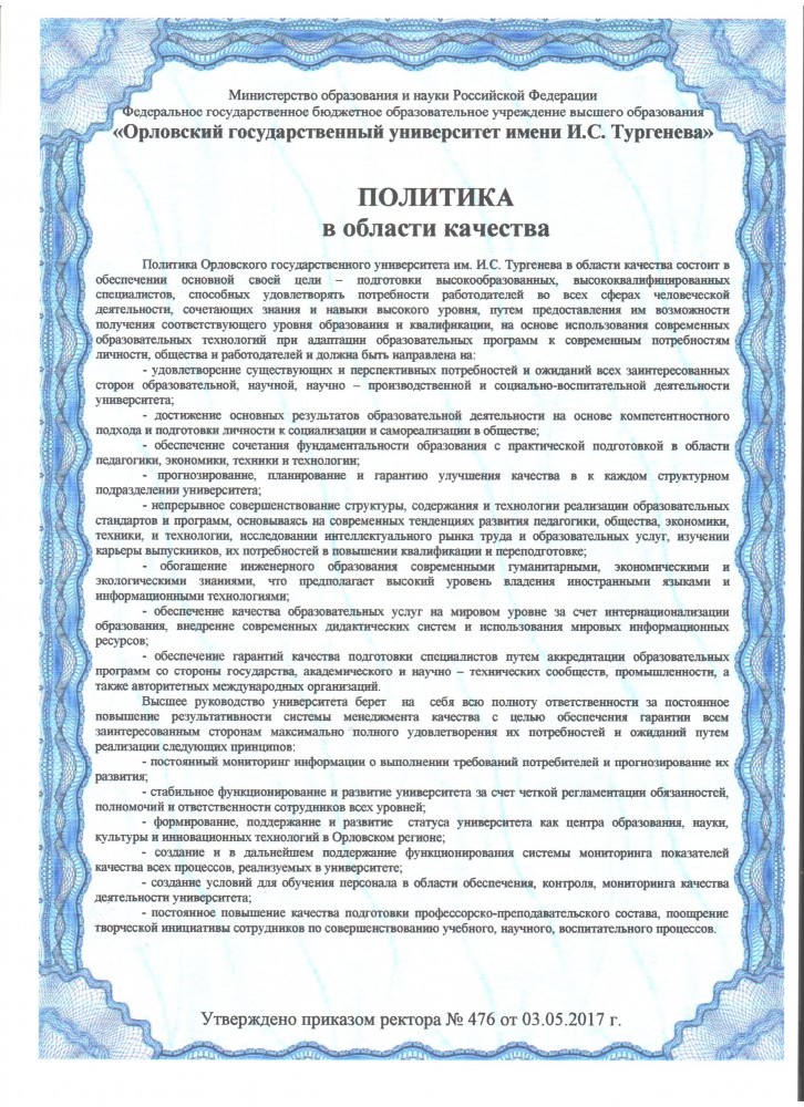 Приказом ректора от 19.03.2021 г. №314 утвержден и введен в действие стандарт организации СТО ОГУ 75-01-06-2021 "СМК. Положения. Общие требования к построению, разработке, оформлению, обозначению, согласованию, утверждению и изменению".