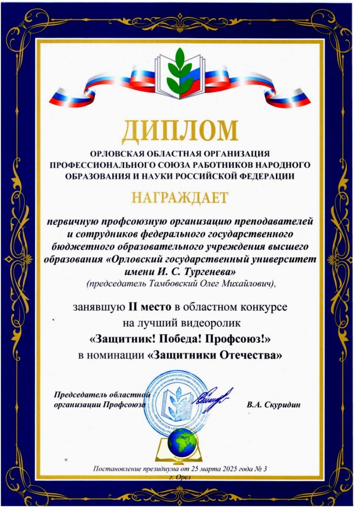 Фотоотчеты первичной профсоюзной организации преподавателей и сотрудников ФГБОУ ВО «Орловский государственный университет имени И.С. Тургенева» Профессионального союза работников народного образования и науки Российской Федерации
