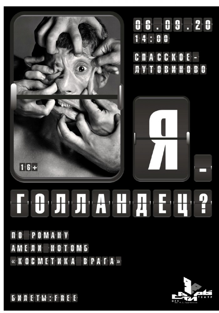 16 декабря 2016 г. в 18.00 ч. спектакль «ОТКУДА МЫ БЕРЕМСЯ» по мотивам повести Виктора Пелевина «Затворник и Шестипалый» по адресу: г.Орел, площадь Каменская, д.1 (здание фундаментальной библиотеки ОГУ), АКТОВЫЙ ЗАЛ.