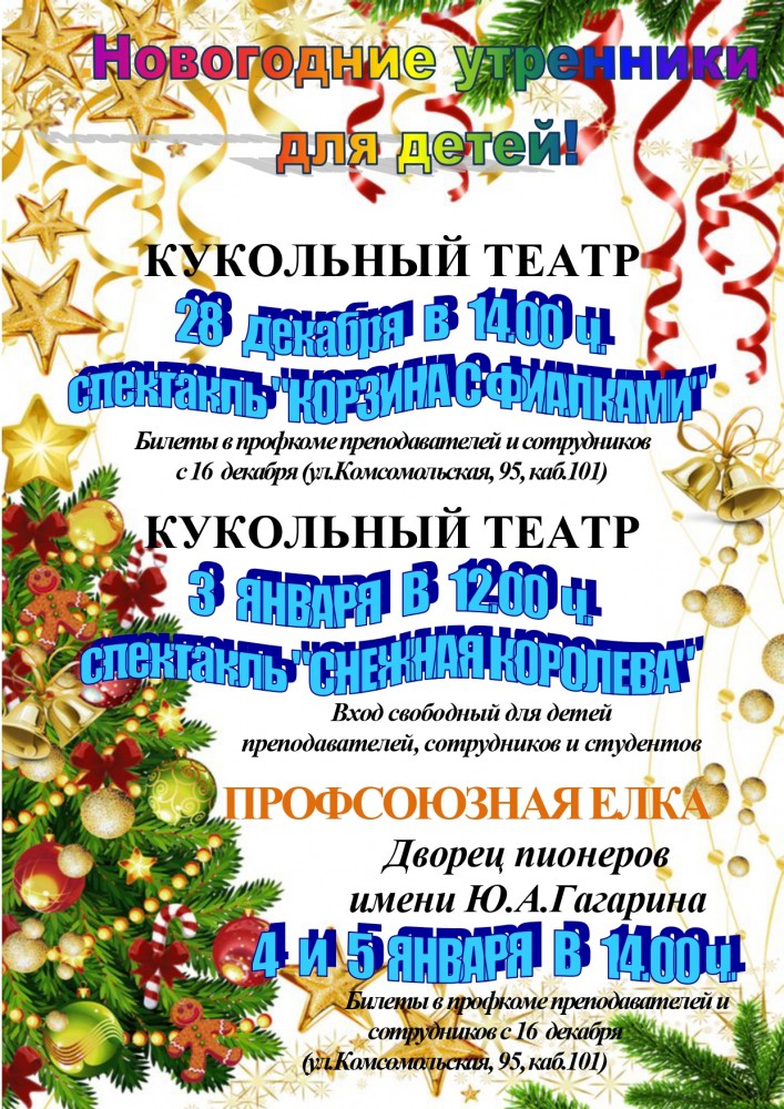 Новогодние утренники для детей сотрудников и преподавателей университета
