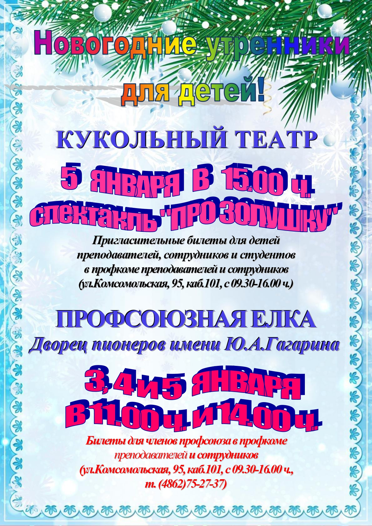 Билеты в профкоме преподавателей и сотрудников (ул.Комсомольская, 95, каб.101)