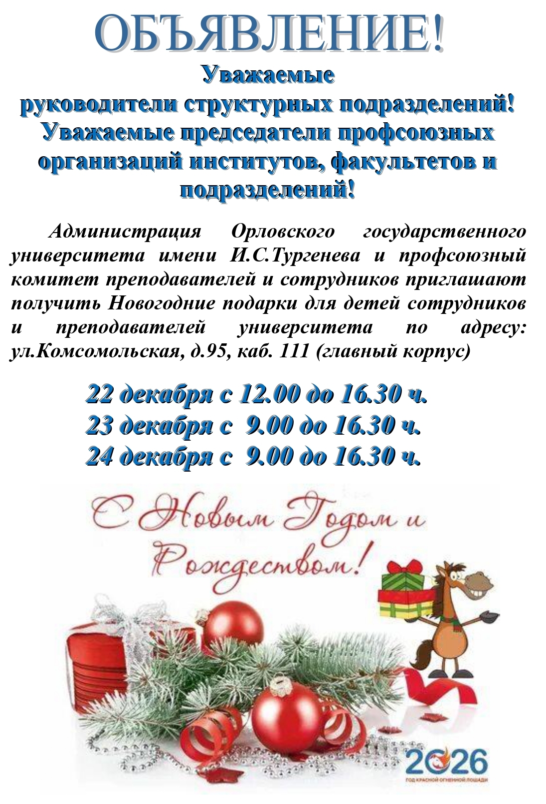 ОБЪЯВЛЕНИЕ для кафедр