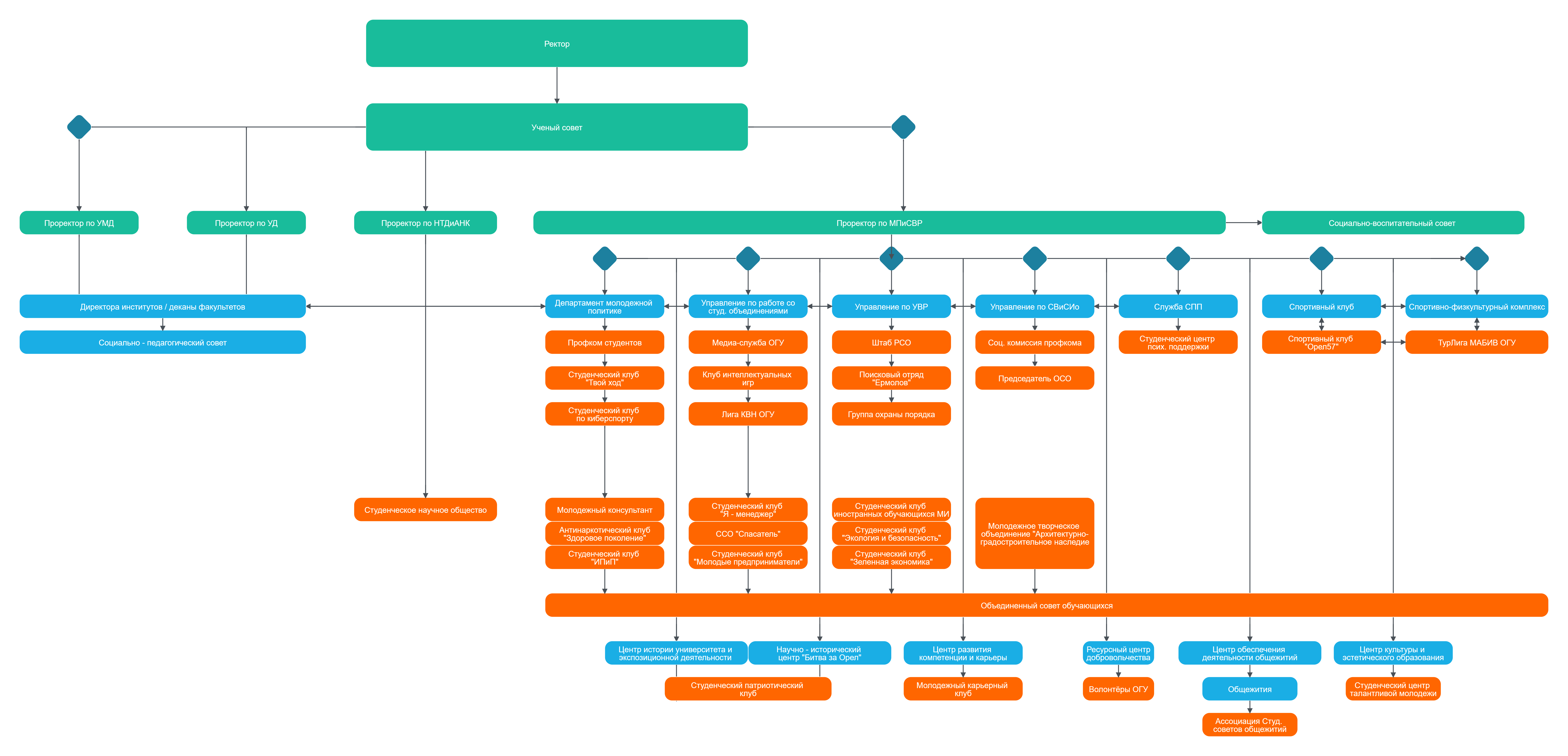 Ректорат университета координирует деятельность структурных подразделений университета (факультетов, институтов, кафедр) по проблемам воспитания, содействует созданию новых организационных форм и методов работы, созданию общественных объединений воспитательного характера.
