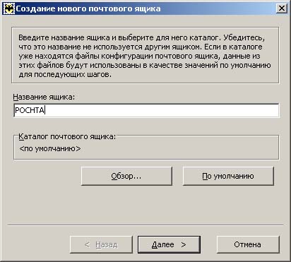 Далее выберете названия ящика. Подойдет любая фраза, например POCHTA: