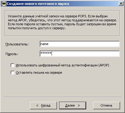 3. Введите имена серверов входящей и исходящей почты: