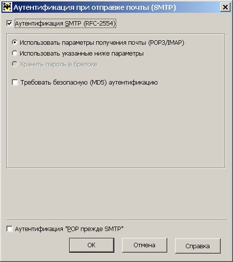 В поле "Отправка почты" нажмите кнопку "Аутентификация...".