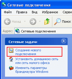 2. В левой части окна выберете пункт «Создание нового подключения»