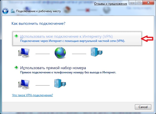 7. В следующем окне выберите Использовать мое подключение к Интернету (VPN)